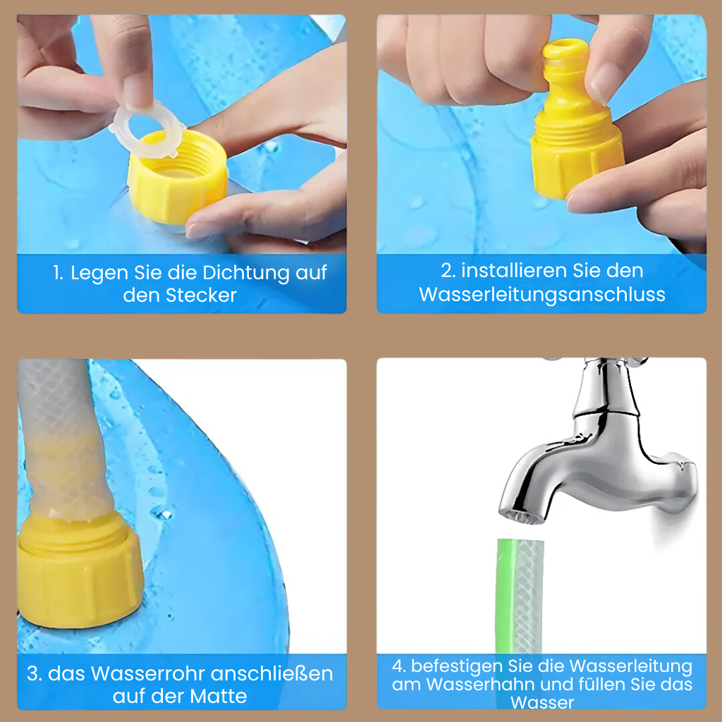 AquaJoy bietet eine perfekte Lösung: Ein aufblasbares Schwimmbad und Sprinkler Pad, das speziell für Hunde entwickelt wurde. Einfach zu installieren und noch einfacher zu nutzen, sorgt es für stundenlangen Spaß und Abkühlung. Ihr Hund wird es lieben, im Wasser zu planschen und durch die spritzenden Wasserfontänen zu rennen.