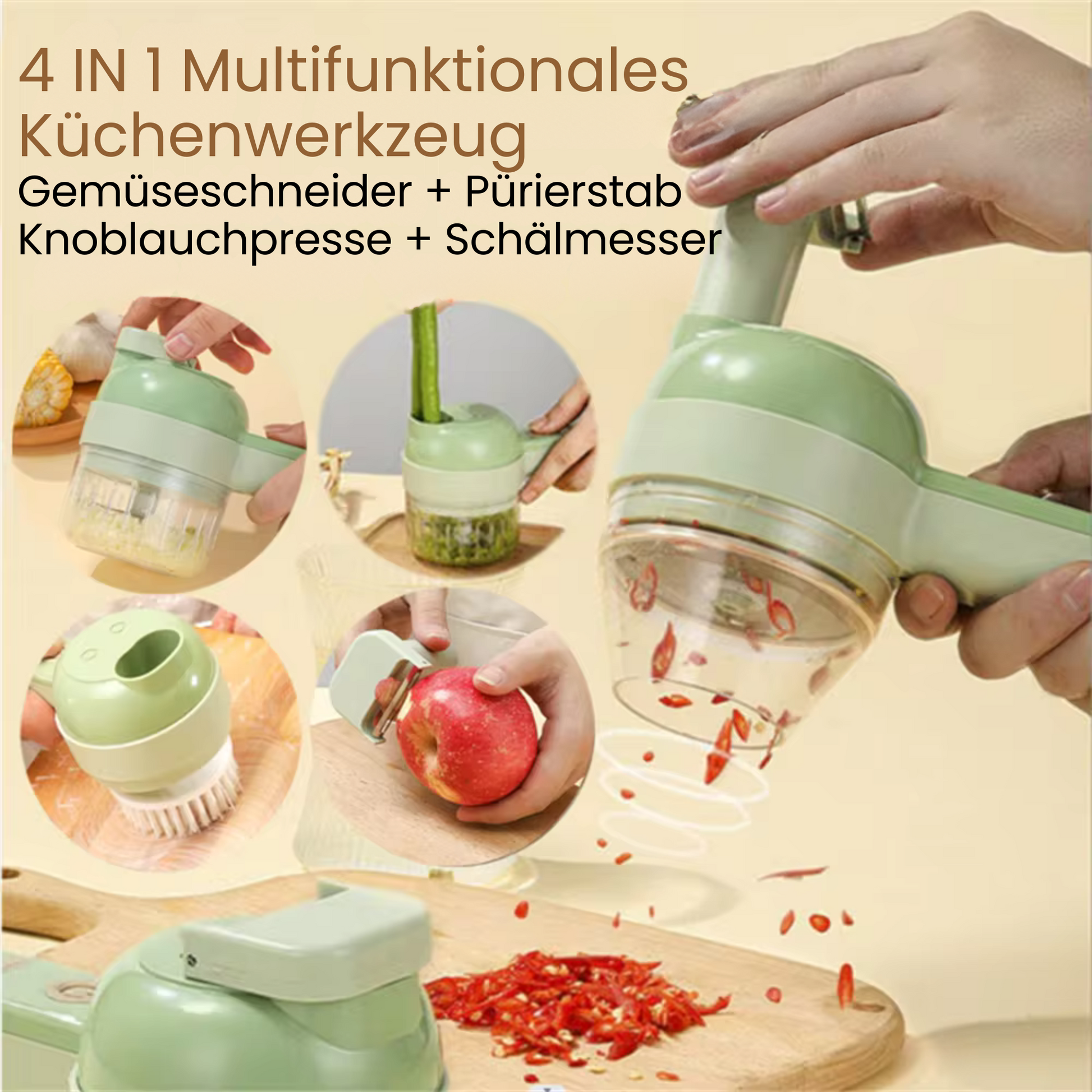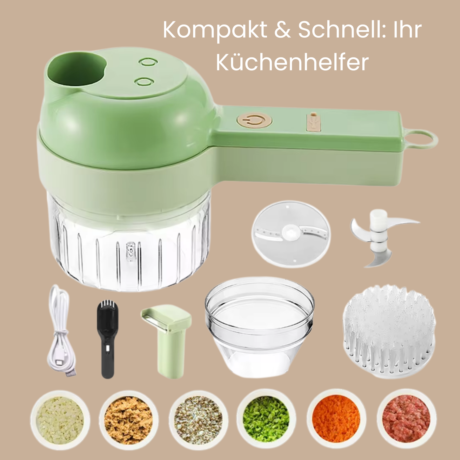 Entdecke den Chopmaster – dein 4-in-1-Küchenhelfer für müheloses Zerkleinern, Pürieren und Schälen.