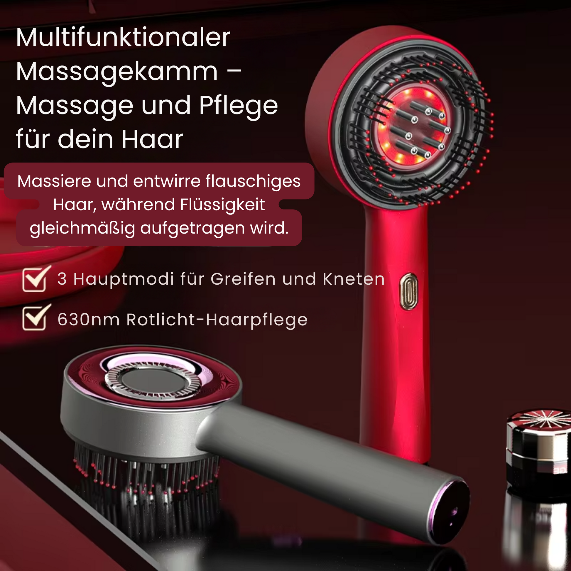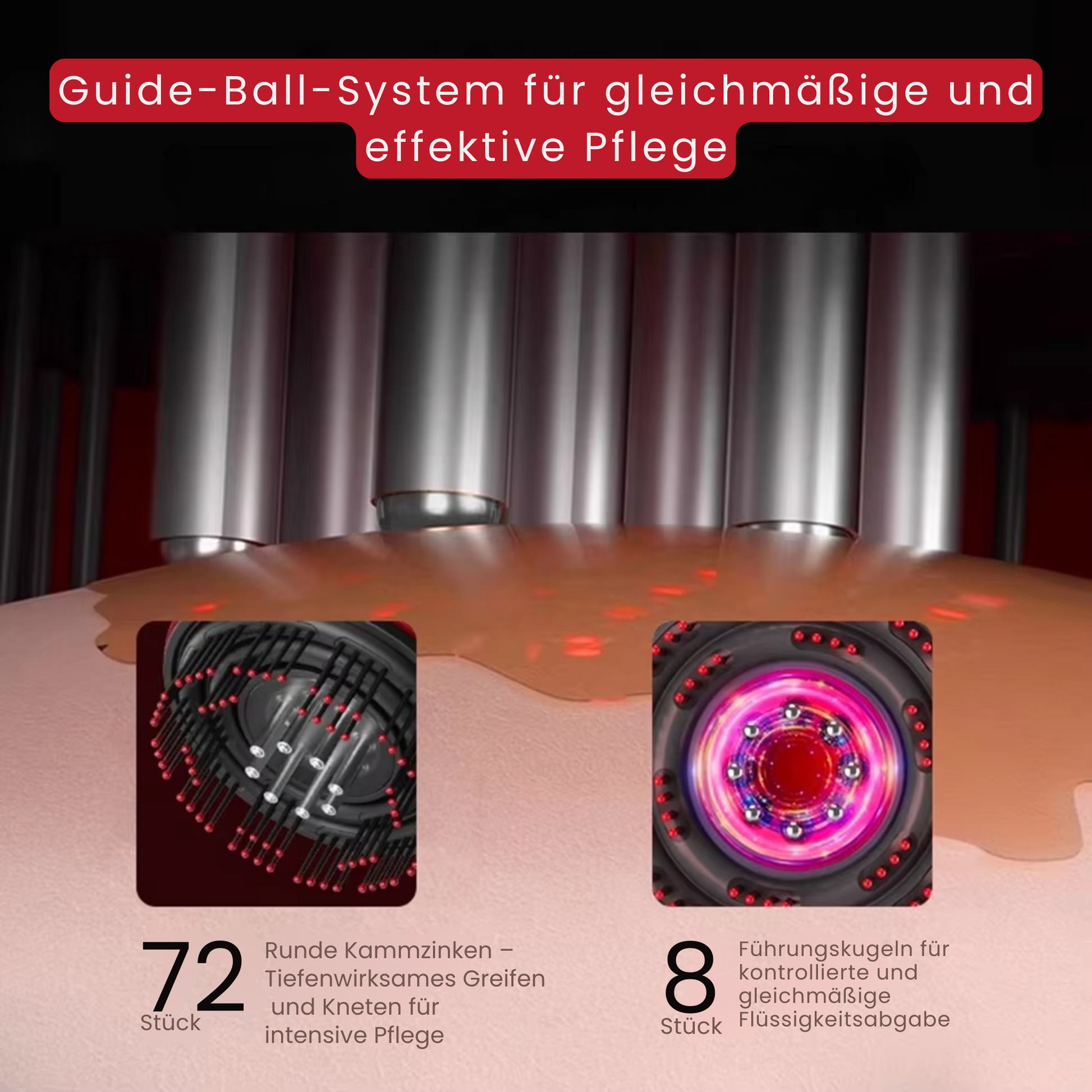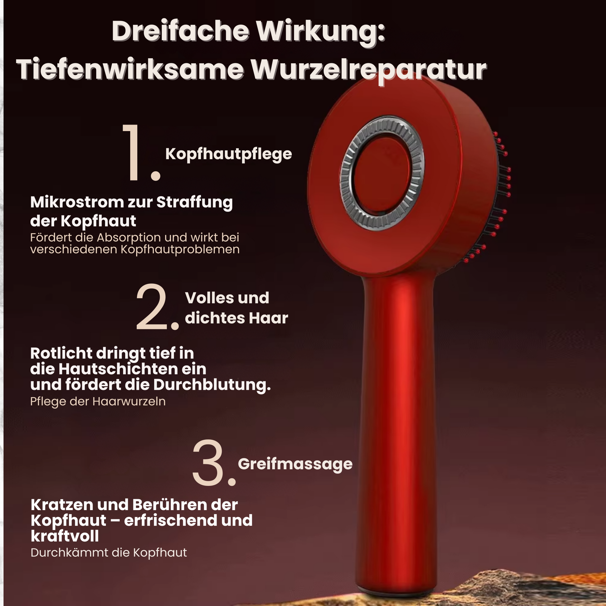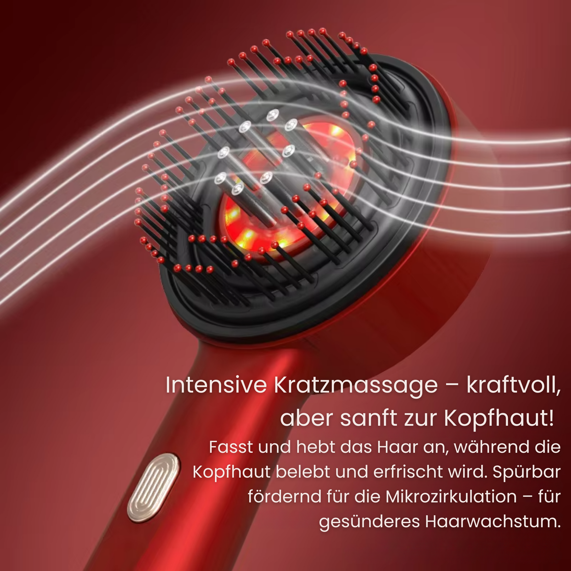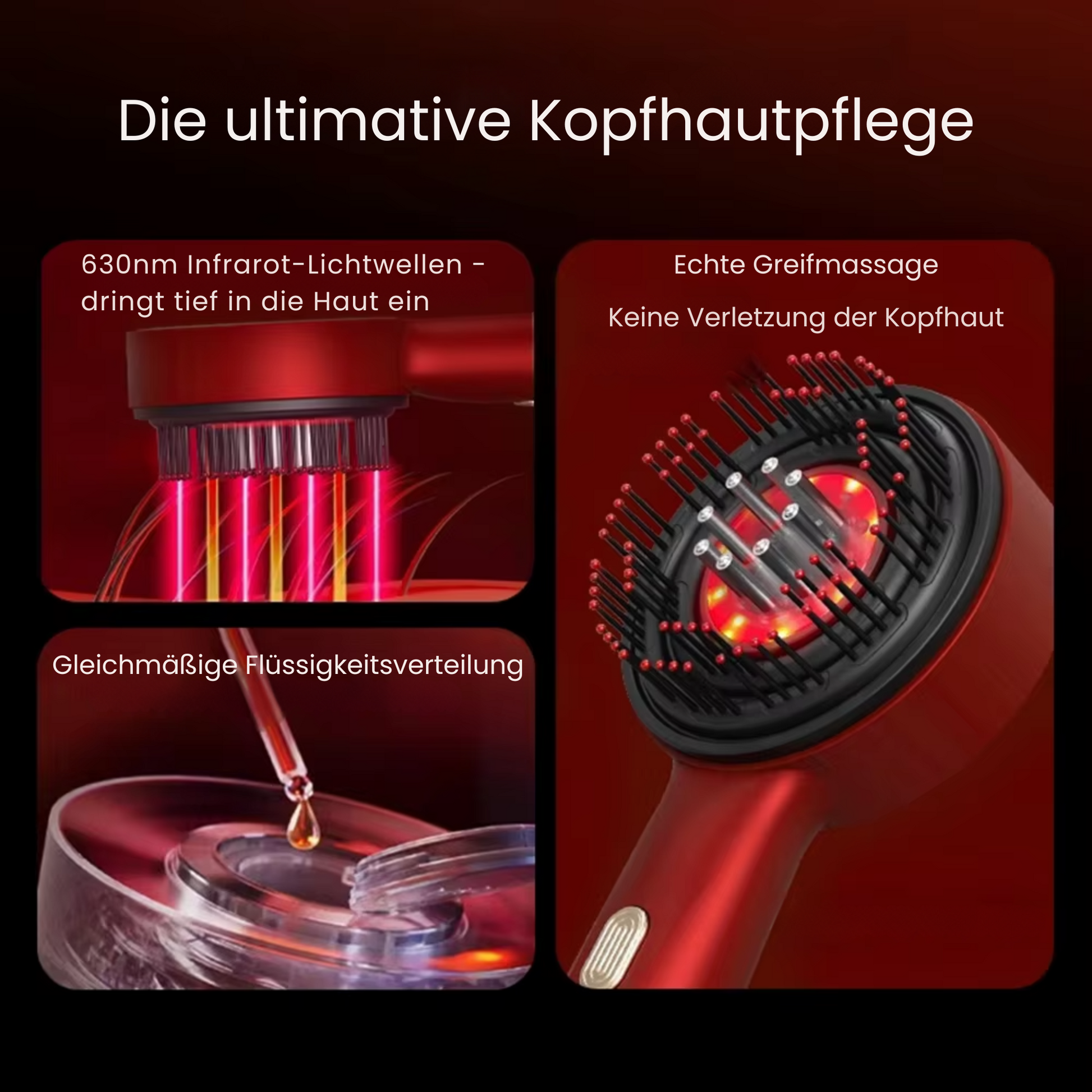 Hier kommt ScalpSense ins Spiel. Mit der 630nm Infrarot-Lichtwellen-Therapie dringt der Kamm tief in die Hautschichten ein und fördert die Durchblutung, wodurch die Haarwurzeln aktiviert werden. Die sanfte Massagefunktion entspannt nicht nur, sondern regt auch die Mikrozirkulation an, die essenziell für das Haarwachstum ist.