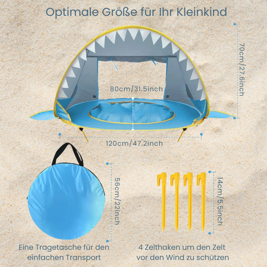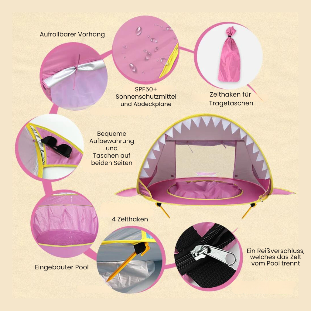Geben Sie Ihrem Baby den besten Strandtag aller Zeiten mit dem SunSplash Baby Beach Zelt mit Splash-Pool! Bestellen Sie jetzt und genießen Sie sorgenfreie Tage am Strand mit Ihrem kleinen Liebling.